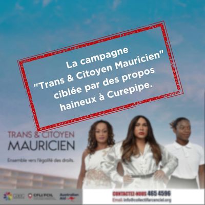 La campagne portée par le Collectif Arc En Ciel "Trans & Citoyen Mauricien", est actuellement victime de propos haineux, incitations à la haine et à la violence sur les réseaux sociaux.